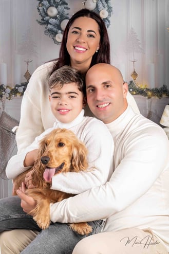 El pasado sábado tuve el privilegio de realizar una sesión fotográfica que quedó grabada en mi memoria como una de las más especiales de mi trayectoria. Retraté a una familia encantadora: papá, mamá y su hijo que celebraba su décimo cumpleaños. Desde el primer momento, la energía que compartimos fue increíble, al nivel de trabajar con modelos profesionales. Y, para agregar un toque inesperado, hasta la mascota de la casa decidió unirse a la sesión, aportando espontaneidad y ternura a muchas de las fotos.